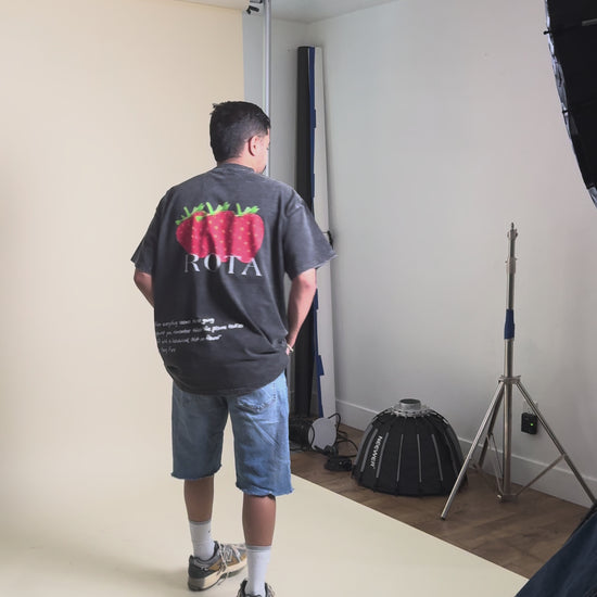 ROTA Strawberry Statement is a sleeveless, cropped Gender Neutral tee made from non-shrink 100% cotton (280 g/m²) with a raw-edge finish for that effortlessly bold street look. The deep tone and dropped shoulders add attitude, while the standout back print features the ROTA logo layered over vibrant strawberries — a signature element of the brand’s visual identity.