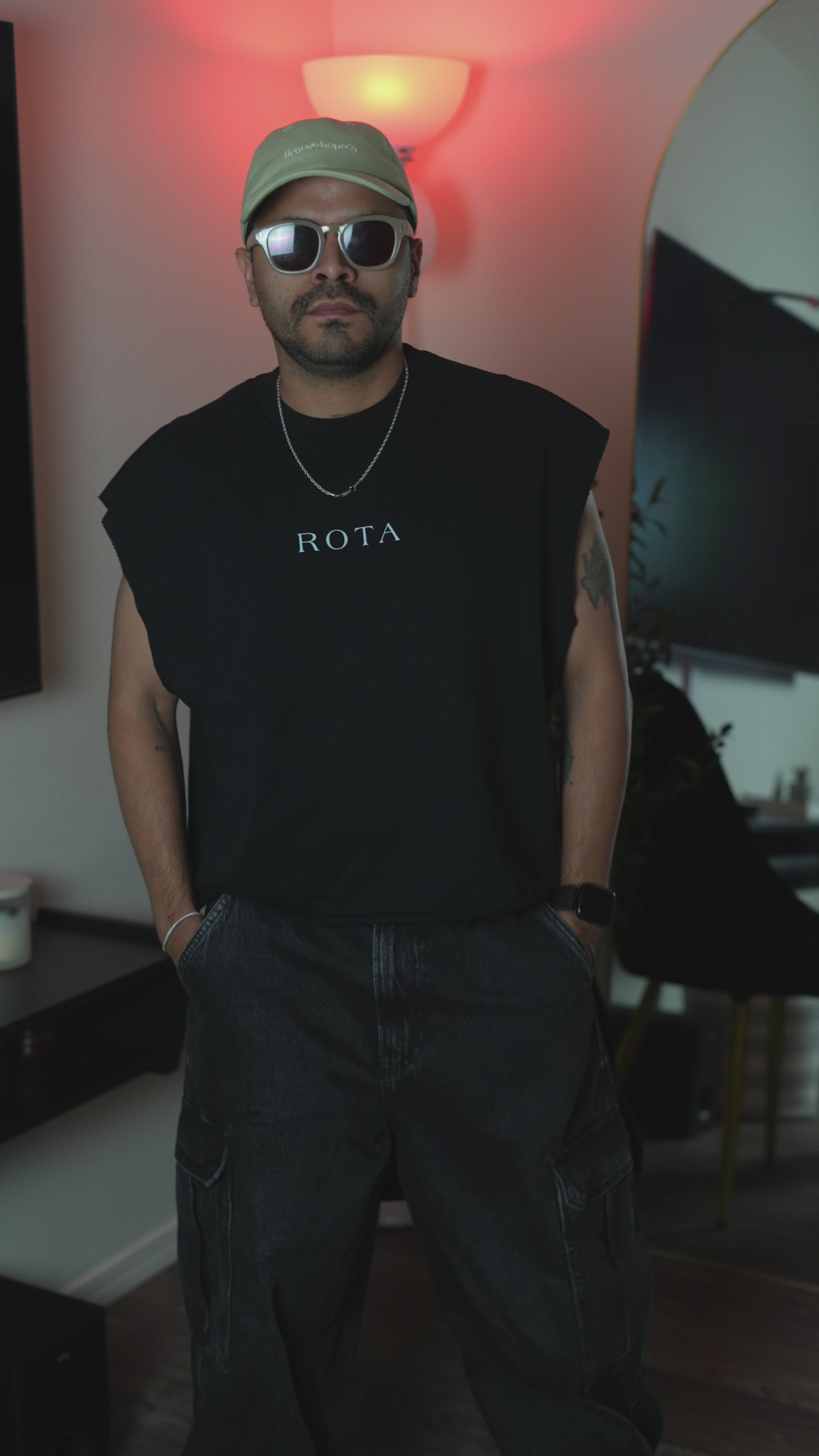 Clean lines with a raw attitude. The ROTA Edge Frame is a Gender Neutral tank top made from 87% cotton and 13% polyester, midweight French Terry (10.0 oz/yd²), offering comfort and structure. Its regular fit, round neck, and frayed hem give it a worn-in, streetwise vibe. The large 40×52 cm back print adds bold energy to a minimal silhouette.