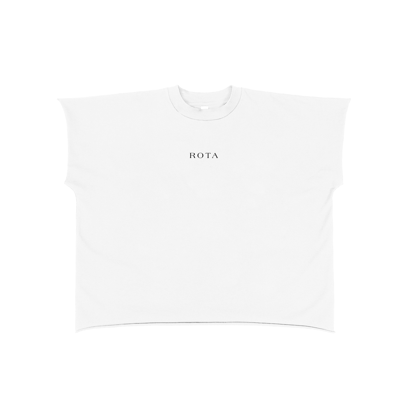ROTA “Strawberry Statement WHITE” Tee | Raw Edge Boxy Non-Shrink T-Shirt – Gender Neutral