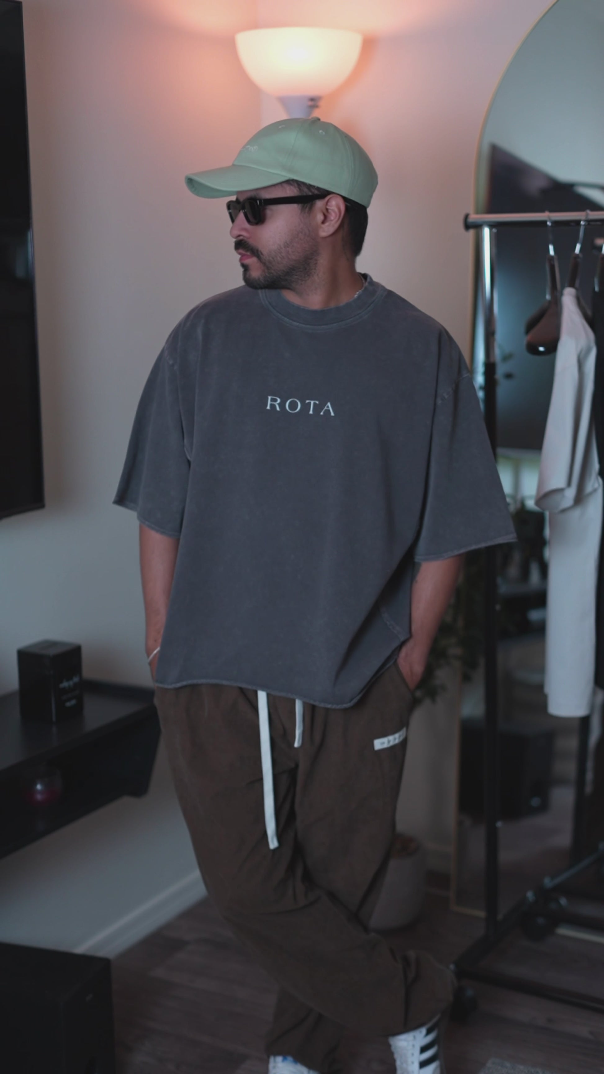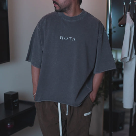 Minimalist branding shows as a small ROTA print centered on the chest, while the lower back sports another subtle logo, balancing simplicity and identity.