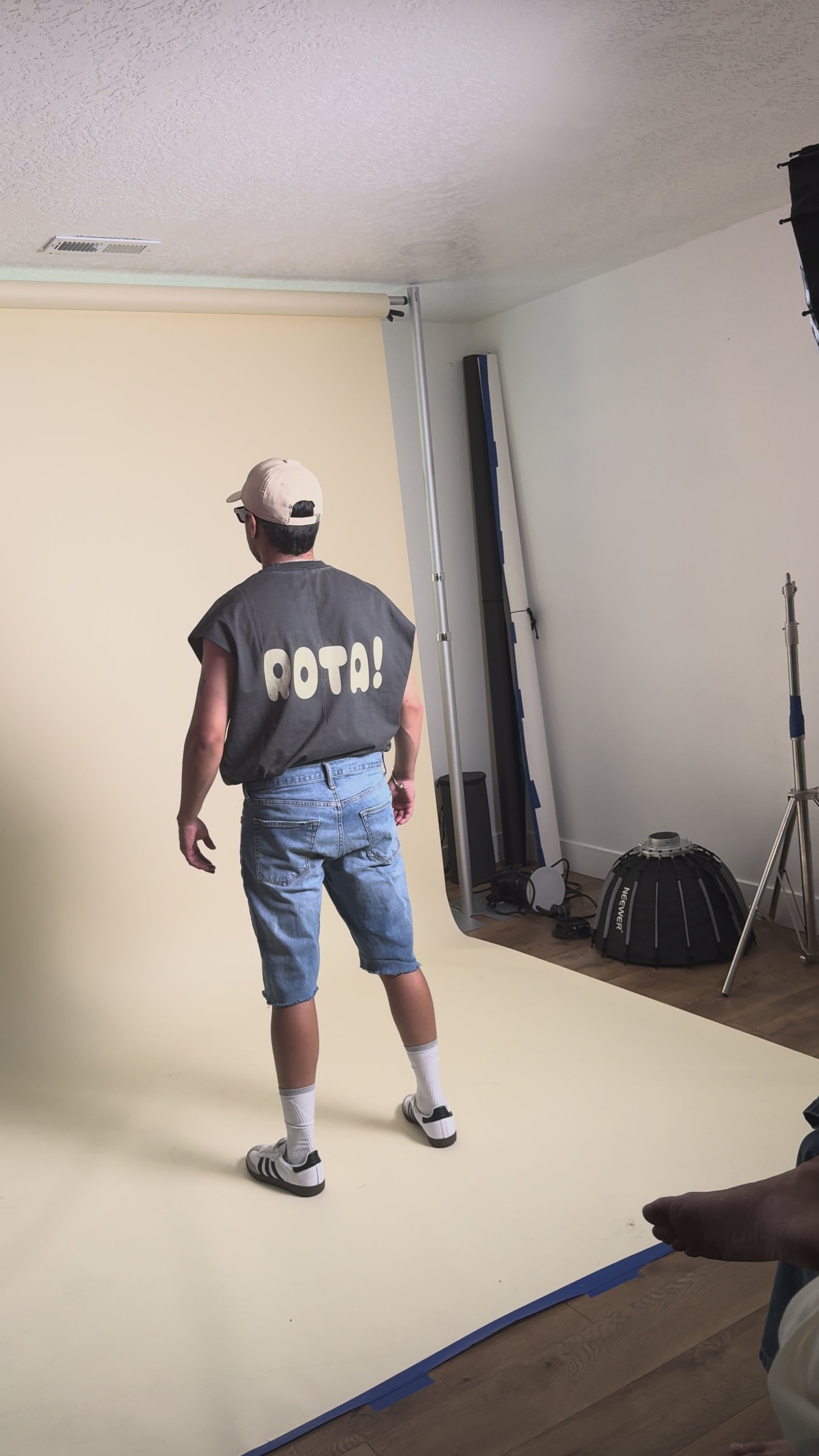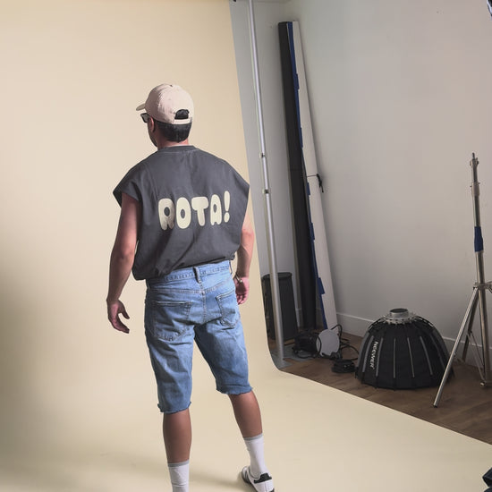 The back features a playful, oversized ROTA print that captures the brand’s fun and rebellious spirit — perfect for layering or standalone wear in warmer seasons.